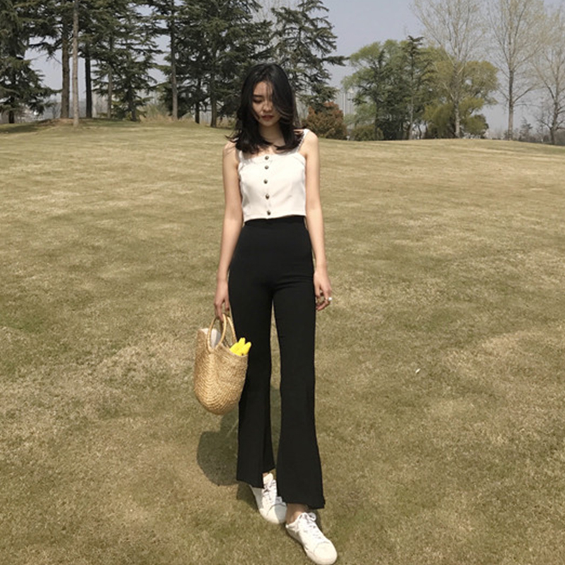 2018春夏新款復古高腰修身顯瘦不規則微喇叭褲女時尚韓版九分褲潮