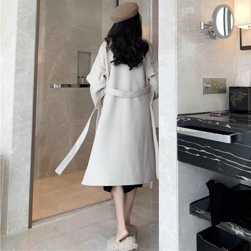 2018流行毛呢外套女秋冬裝新款赫本大衣純色寬松開衫學生長袖上衣