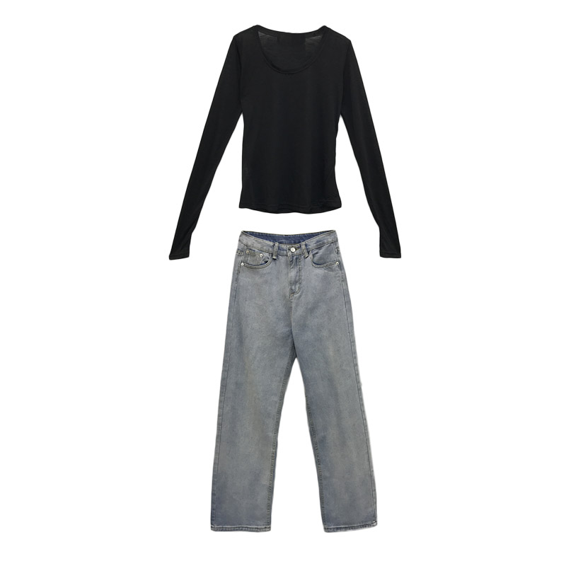 很有新意的一款套裝哦~T恤+牛仔褲,