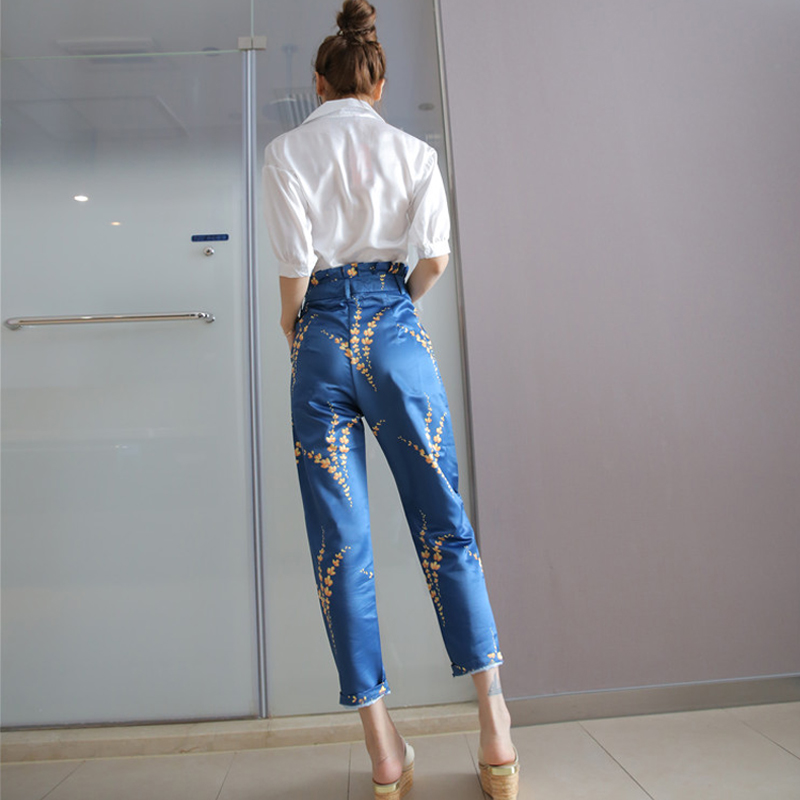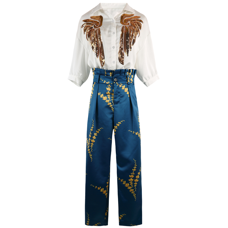/ 歐洲站2018新款夏女裝名媛時尚氣質套裝襯衫印花雪紡兩件套裝女
