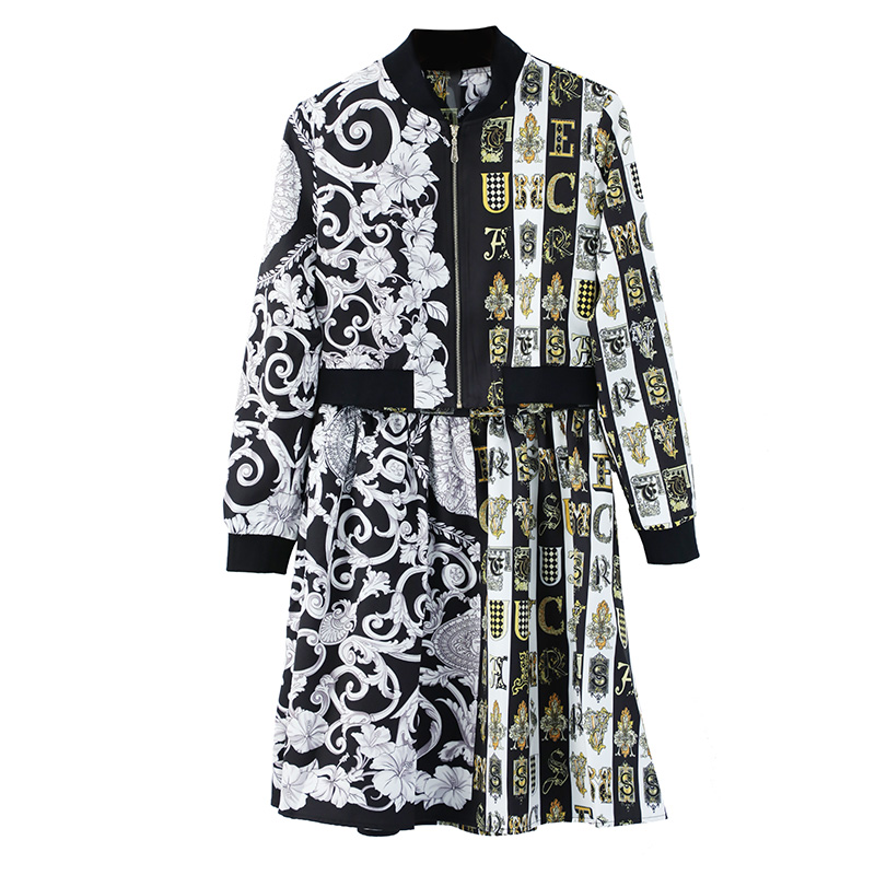 / 長袖連衣裙女2018新款減齡休閑印花上衣外套半身裙兩件套裝裙子潮