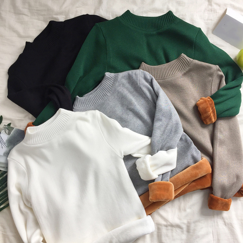 加絨加厚毛衣女半高領針織打底衫秋冬裝新款修身套頭長袖保暖上衣