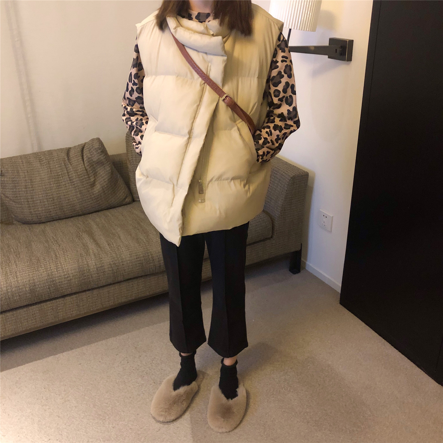 / 韓版時尚休閑套裝秋冬女裝面包服棉衣馬甲+豹紋內搭+呢子褲三件套