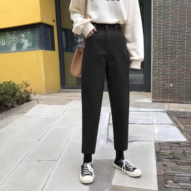 / 韓版褲子秋冬2018新款加厚高腰寬松九分老爹褲哈倫牛仔褲女~三色