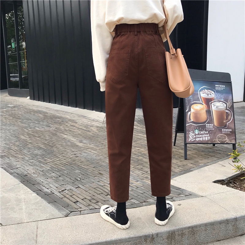 韓版褲子秋冬2018新款加厚高腰寬松九分老爹褲哈倫牛仔褲女~三色
