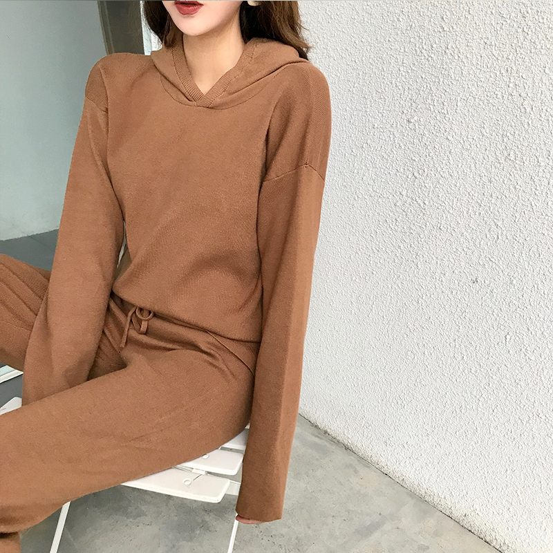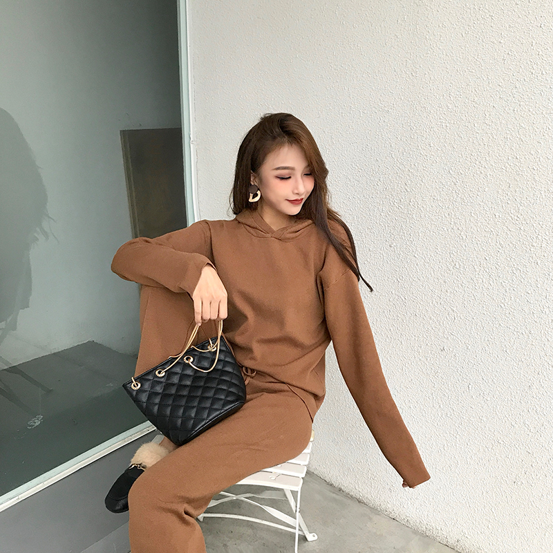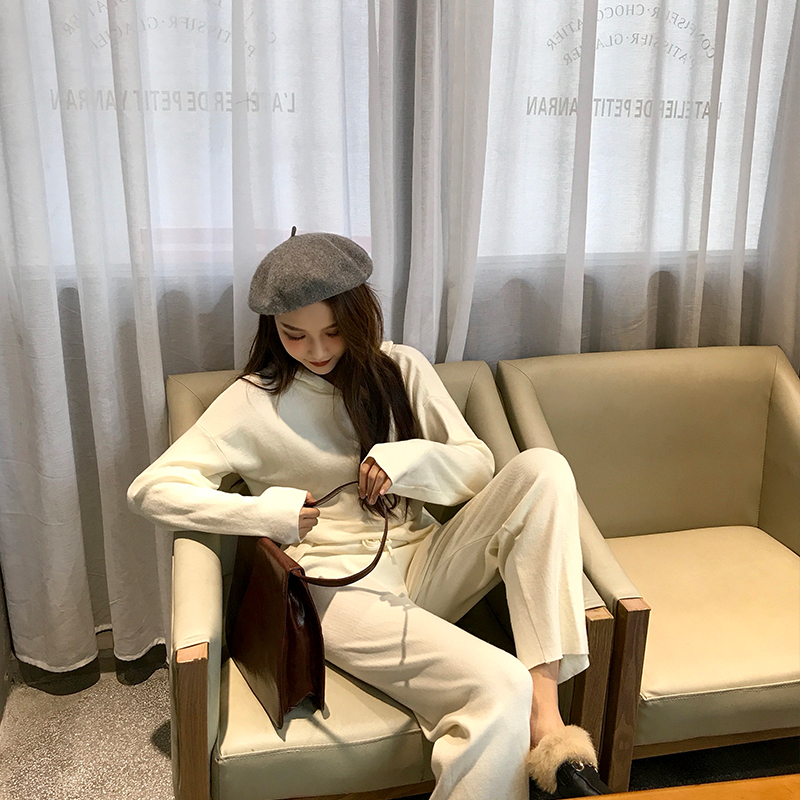 / 新款韓版寬松顯瘦長袖套頭上衣松緊腰直筒九分褲時尚套裝兩件套女