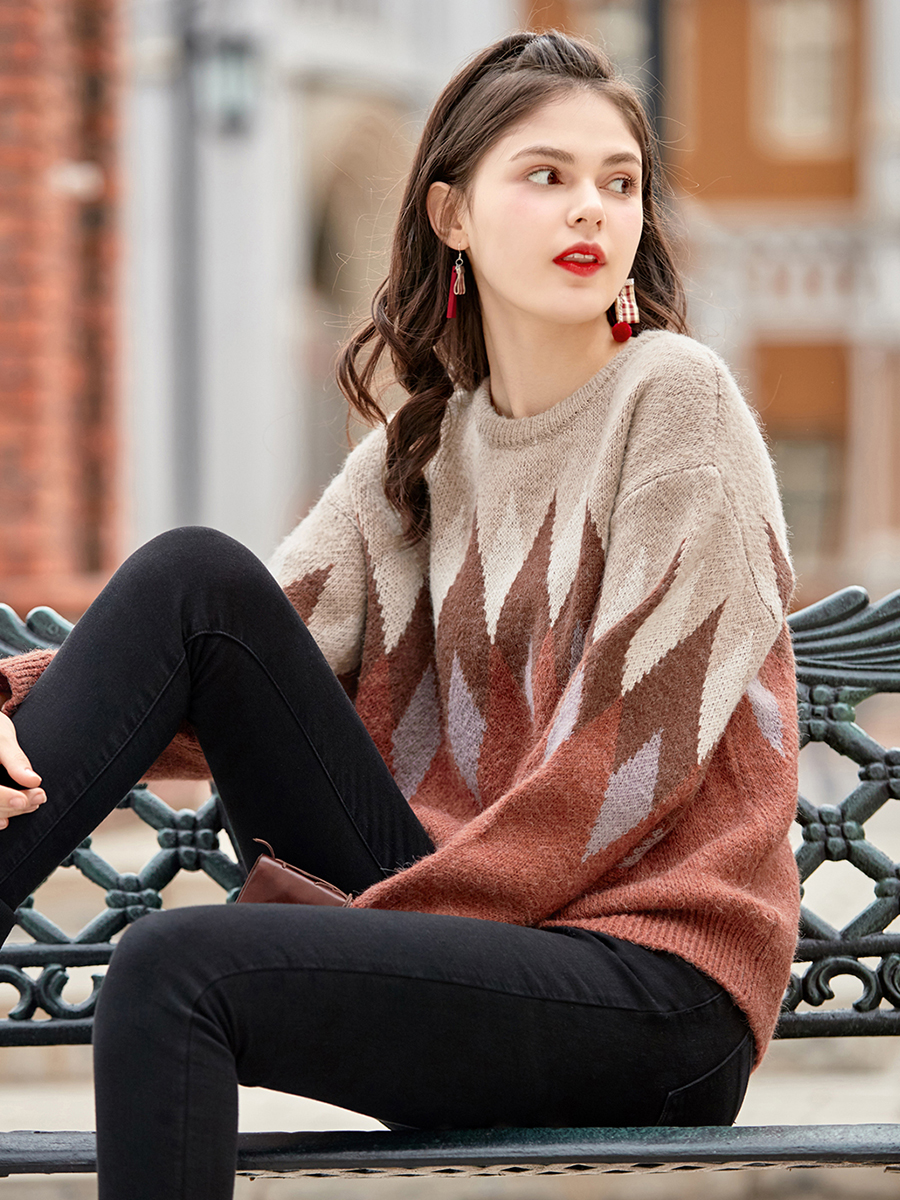 MG小象圓領套頭針織衫女寬松長袖外搭毛衣2018新款學生chic上衣潮