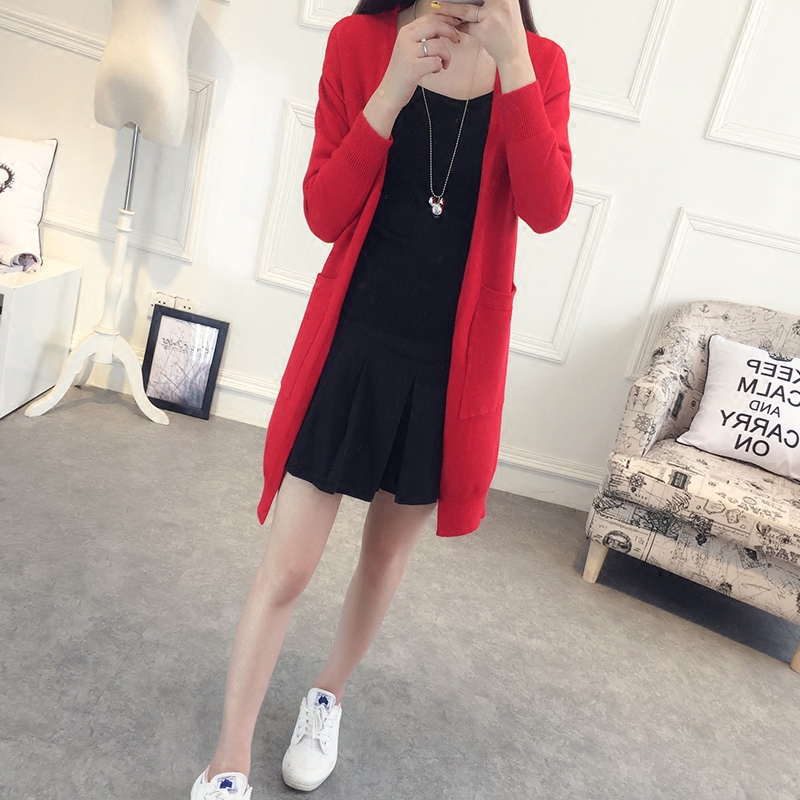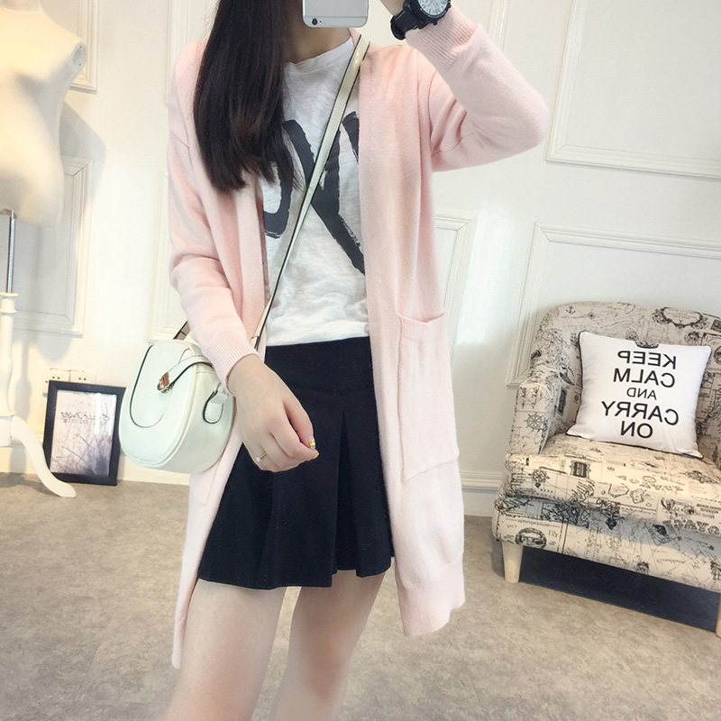 / 開衫女毛衣韓版寬松中長款純色針織衫學生外套秋裝女裝新款潮
