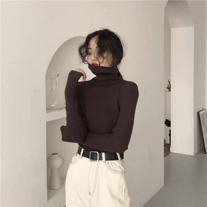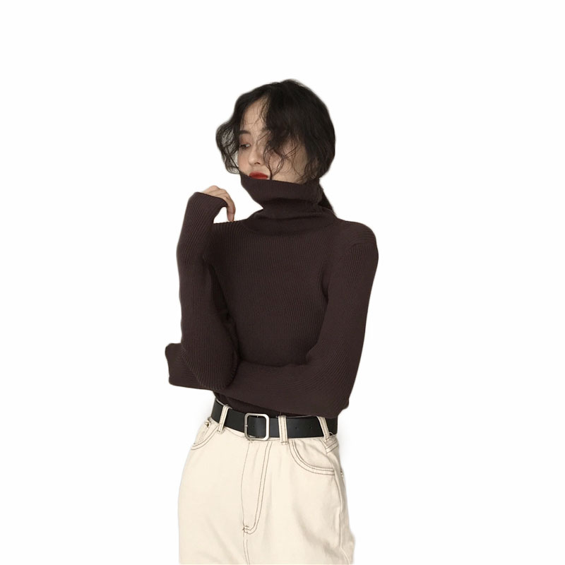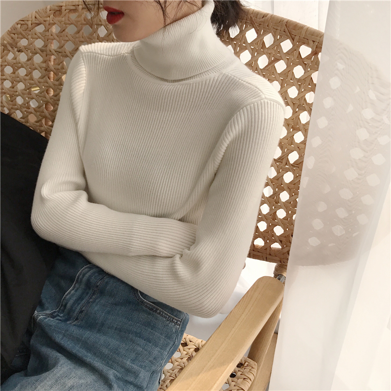 慵懶風套頭毛衣女2018新款秋冬純色百搭氣質高領打底厚針織衫上衣