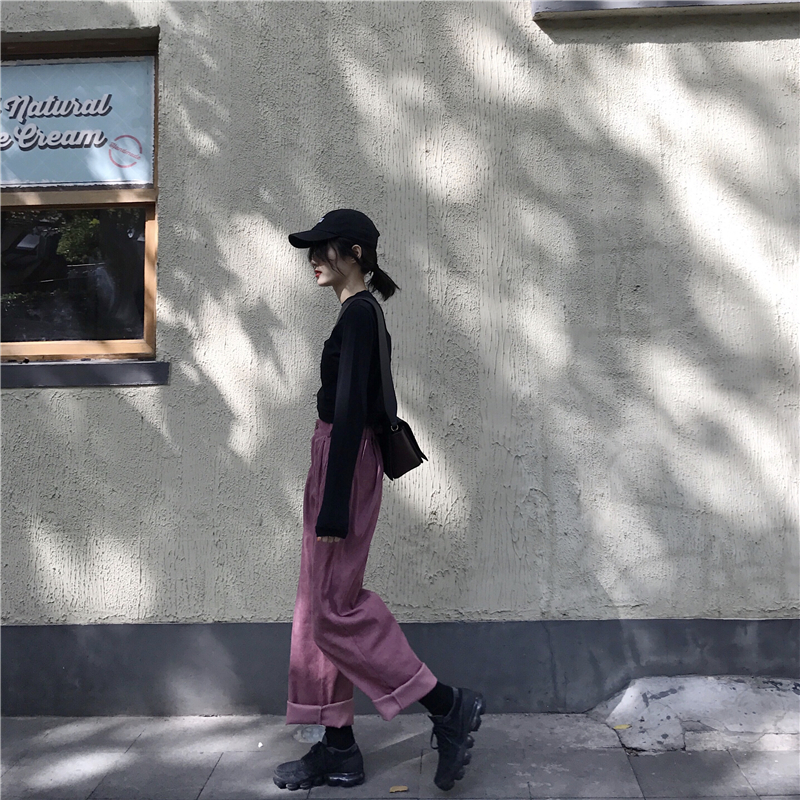 / 2018新款秋冬女裝韓版松緊腰燈芯絨長褲寬松闊腿褲休閑褲學生褲子
