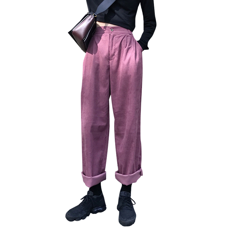 2018新款秋冬女裝韓版松緊腰燈芯絨長褲寬松闊腿褲休閑褲學生褲子