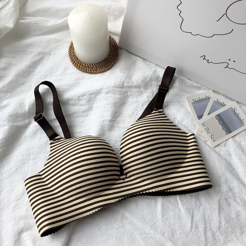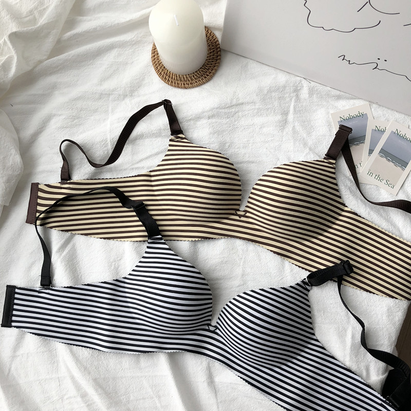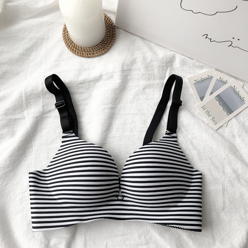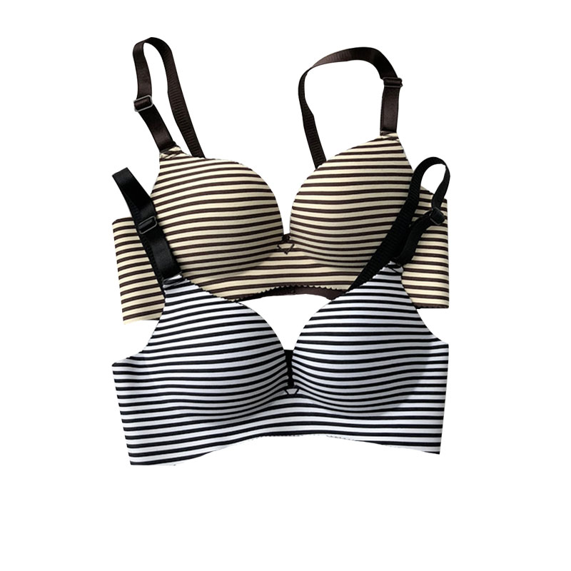 / 夏季條紋無鋼圈文胸一片式無痕性感聚攏胸罩吊帶背心內衣上衣女士