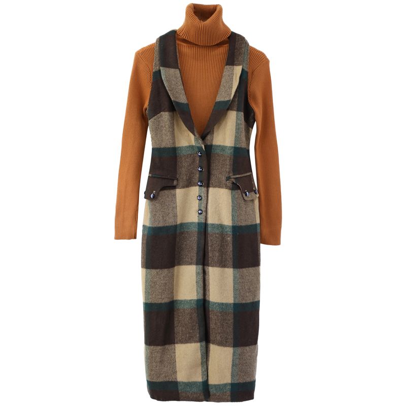 名媛氣質馬甲套裝女2018秋新款中長款無袖毛呢馬甲高領針織連衣裙