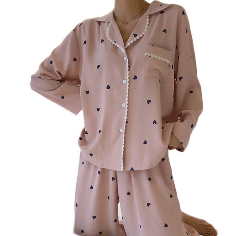 秋裝女2018新款時尚韓版睡衣女長袖長褲愛心秋全棉家居服兩件套潮