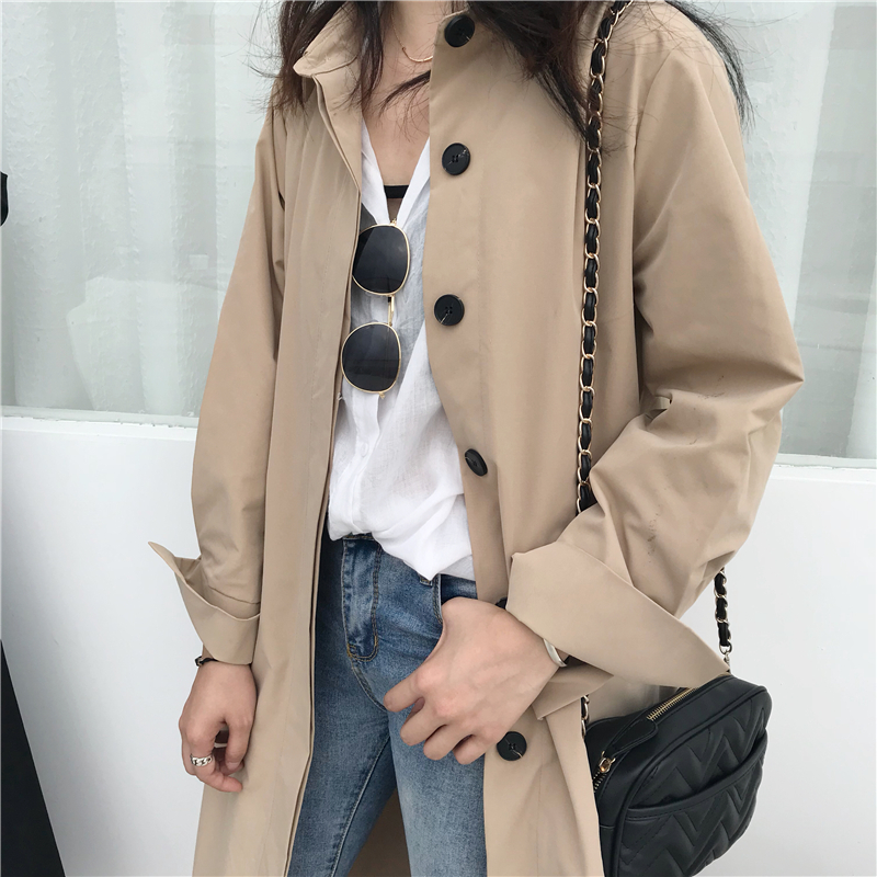/ 小香風秋裝新款韓版chic韓風單排扣百搭時尚氣質長款風衣寬松外套
