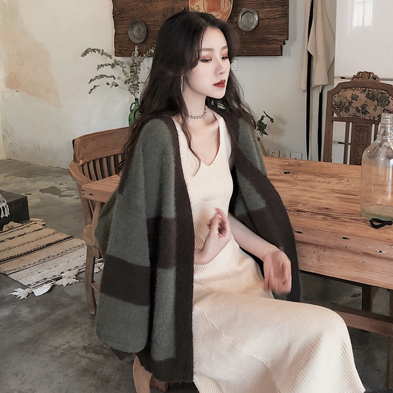 / 寬松慵懶毛衣女秋冬裝2018新款學生甜美條紋針織開衫時尚長袖外套