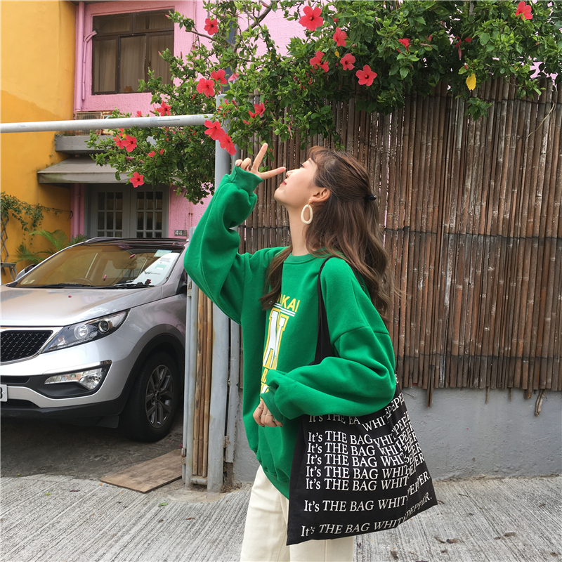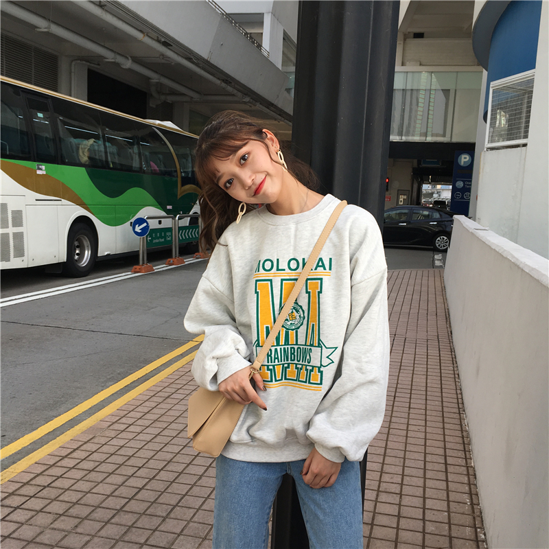 / 2018新款秋冬韓版寬松加厚加絨原宿風字母套頭超火衛衣上衣外套女
