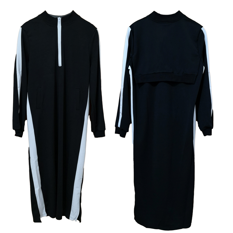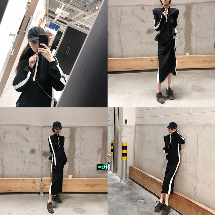 / 港風時尚女秋裝2018新款裙子黑白拼色長款休閑裙立領設計款連衣裙