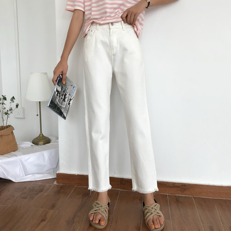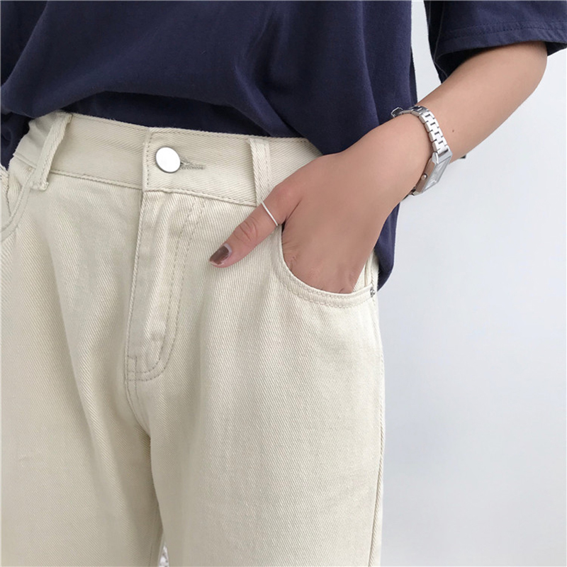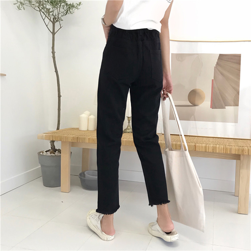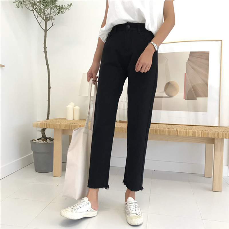 / 高腰松緊顯瘦復古水洗牛仔九分褲女秋裝新款韓版學生休閑直筒褲潮
