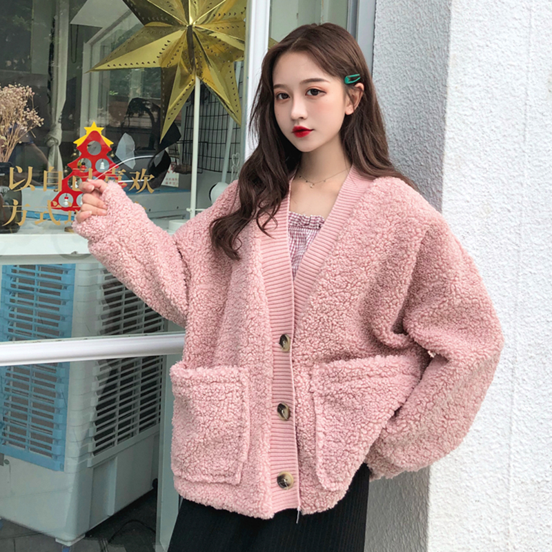 學生慵懶風寬松開衫秋裝女2018新款甜美純色外套學生簡約長袖上衣