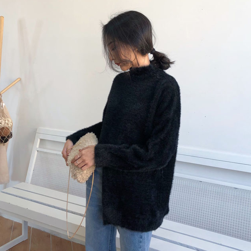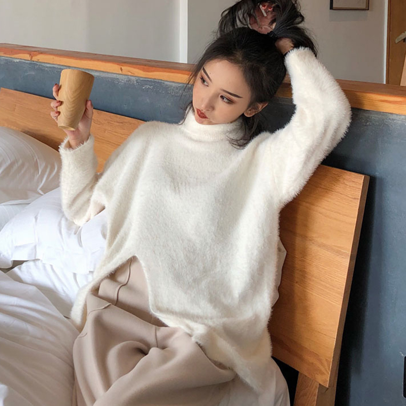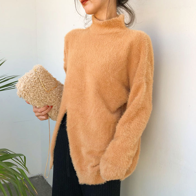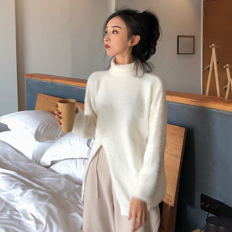 / 復古風純色半高領毛衣秋裝女2018新款個性開叉長袖針織衫純色上衣