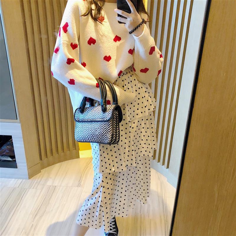 愛心毛衣白色|愛心毛衣紅色|蕾絲蛋糕裙|波點蛋糕裙