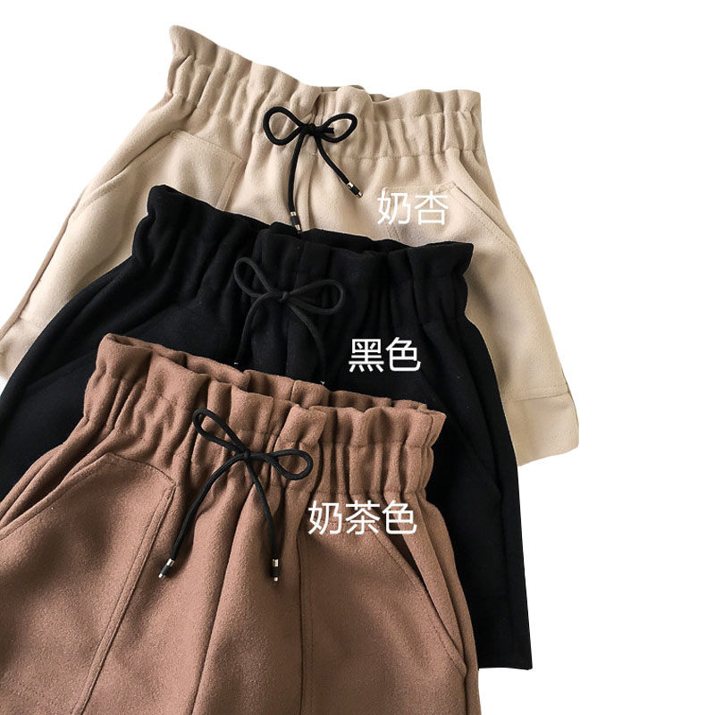/ 秋冬女裝韓版松緊腰加厚闊腿褲短褲寬松高腰直筒褲休閑褲學生褲子
