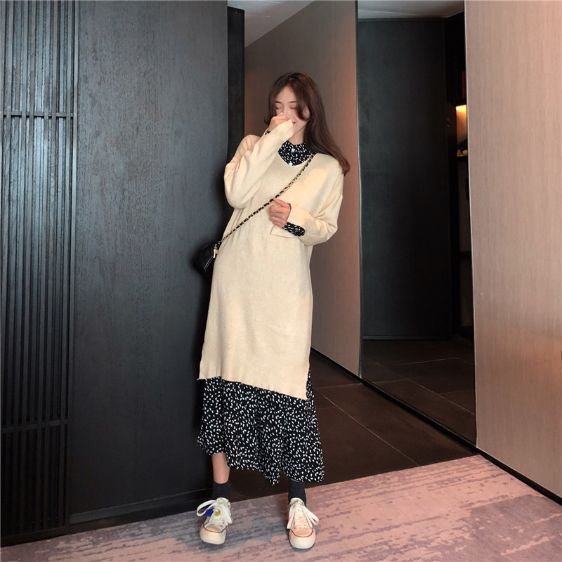/ 韓版碎花波點雪紡長袖連衣裙女裝秋冬2018新款女中長款打底襯衫裙