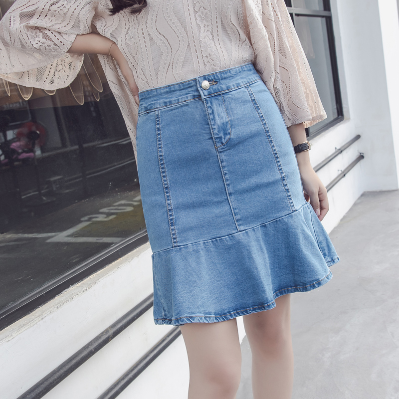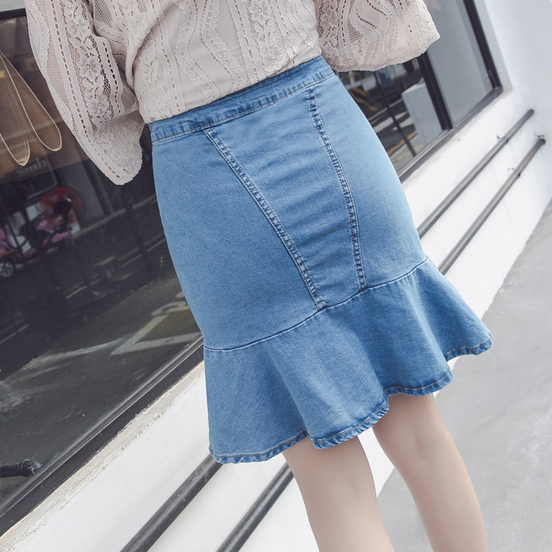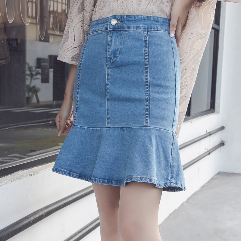 / 韓版高腰牛仔裙半身裙女荷葉邊短裙A字裙包臀魚尾裙褲裙半裙夏季