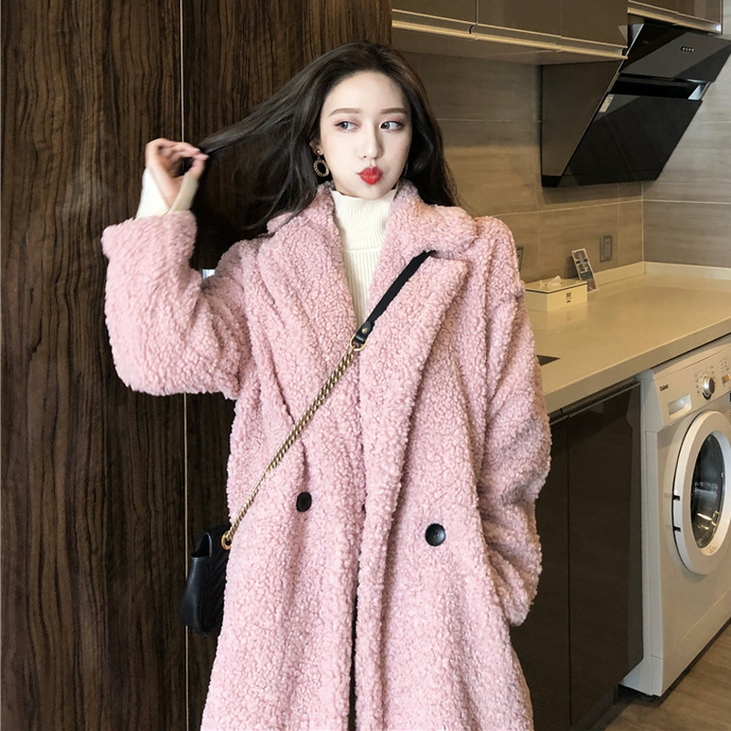 復古溫柔氣質羊羔毛單排扣純色加厚保暖長款毛呢外套女2018新款冬
