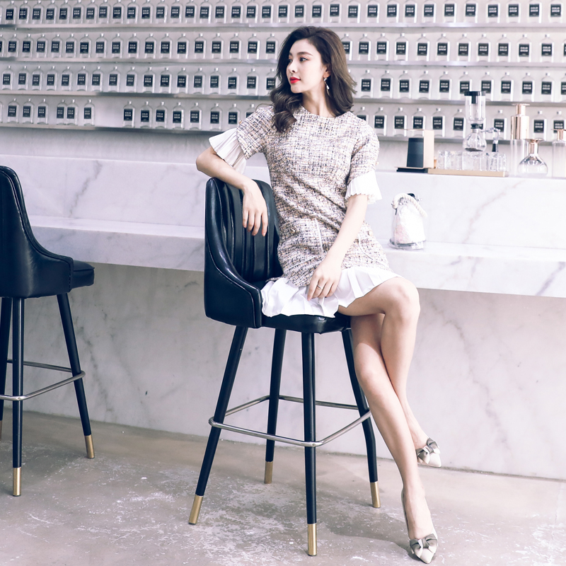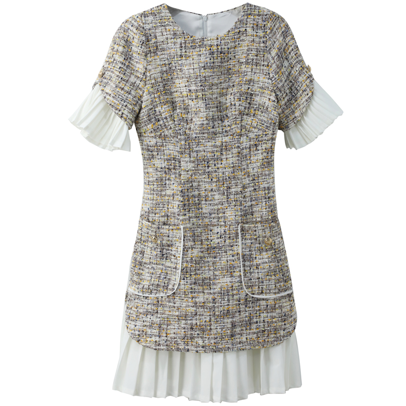 時尚圓領連衣裙女秋冬季2018新款韓版寬松花色假兩件荷葉邊裙子