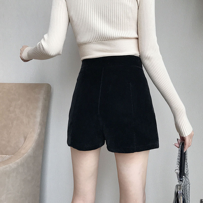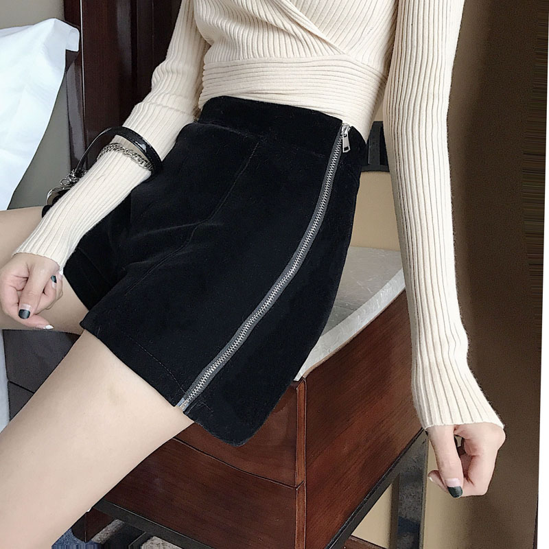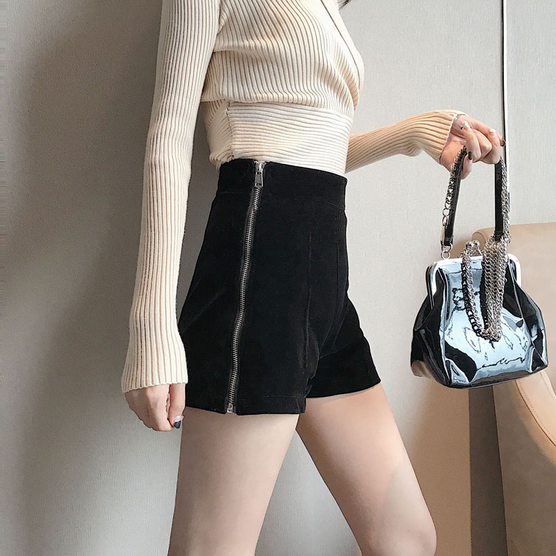 / 褲子女2018秋冬新款chic低腰時尚百搭絲絨雙拉鏈短褲休閑闊腿褲潮