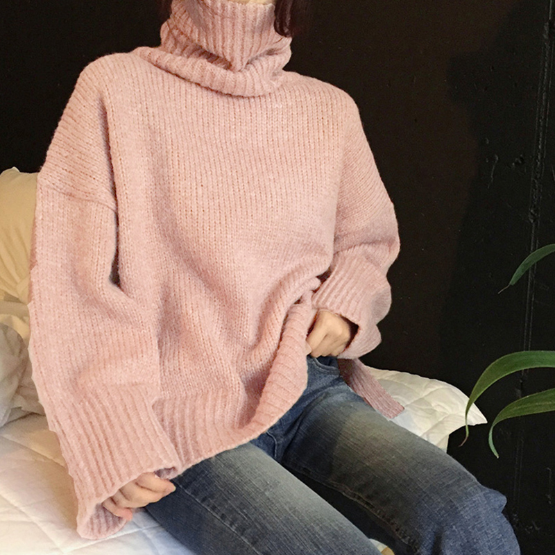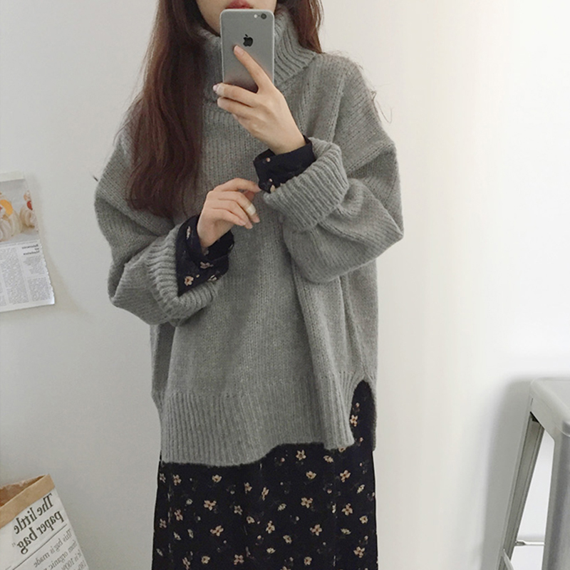 慵懶風高領保暖毛衣外套女冬裝2018新款韓版寬松長袖套頭針織衫潮