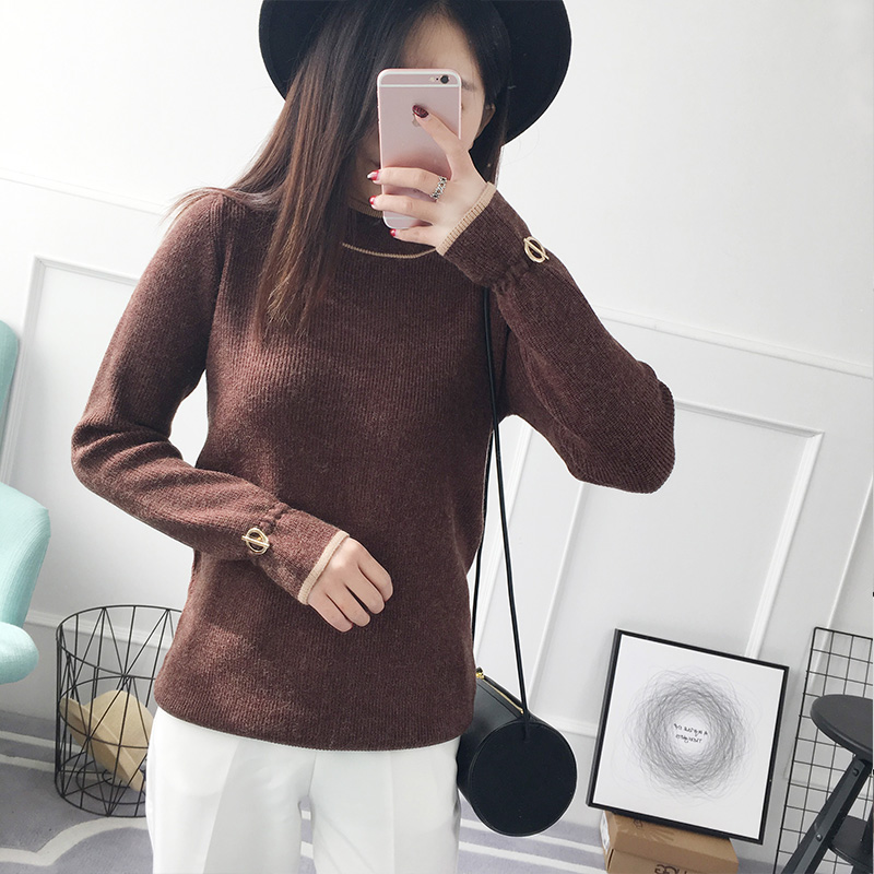 / 半高領套頭毛衣女秋冬韓版純色打底衫長袖針織衫女裝秋裝新款