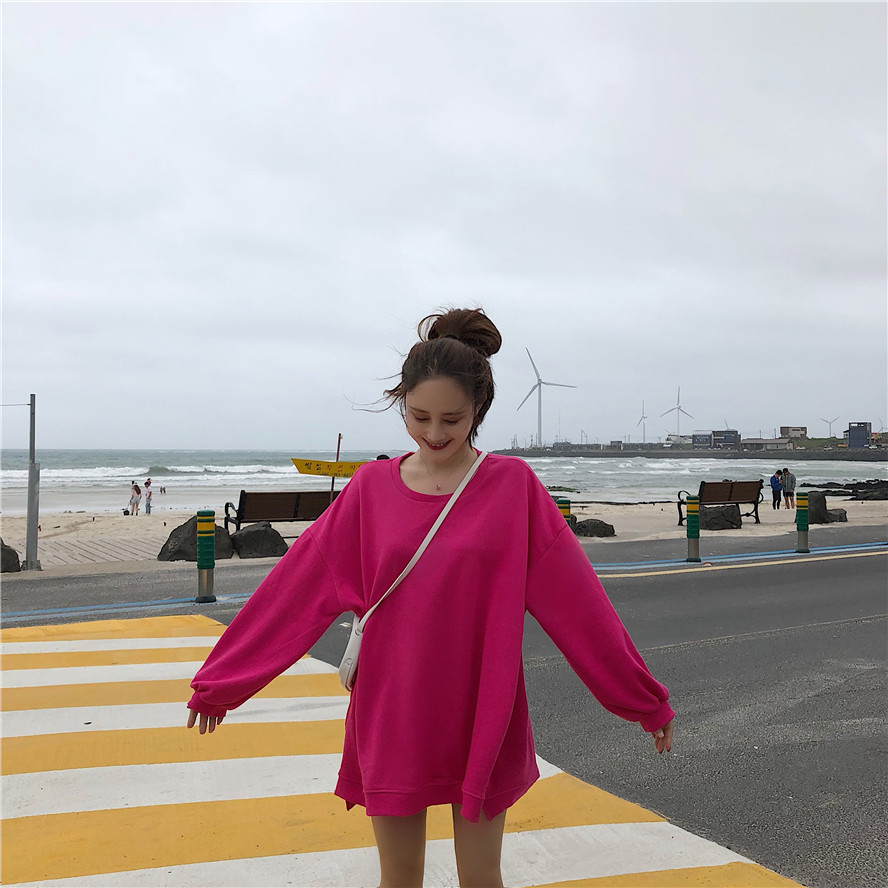 / 復古韓國chic風百搭寬松薄款長袖圓領T恤衛衣多色秋裝女2018新款
