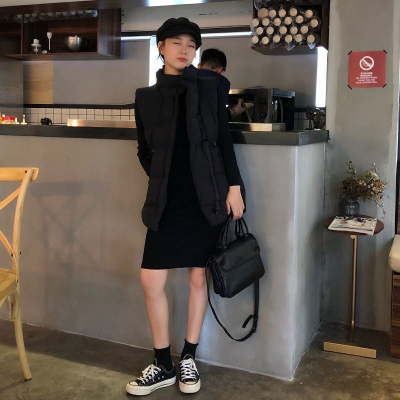 黑色馬甲|杏色馬甲|黑色針織連衣裙|卡杏色針織連衣裙