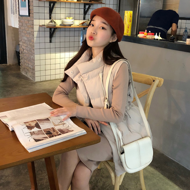 / 時尚套裝秋冬女2018新款韓版無袖棉衣馬甲修身打底針織長袖連衣裙