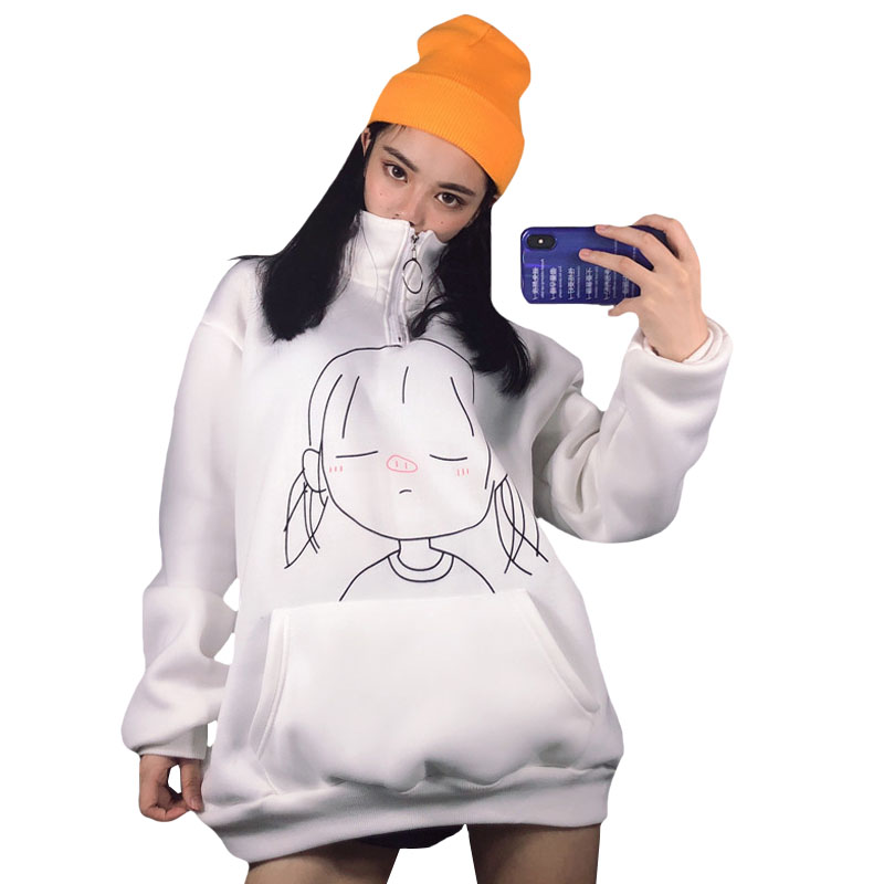 / 2018新款秋冬韓版中長款寬松卡通立領加絨加厚超火衛衣上衣外套女
