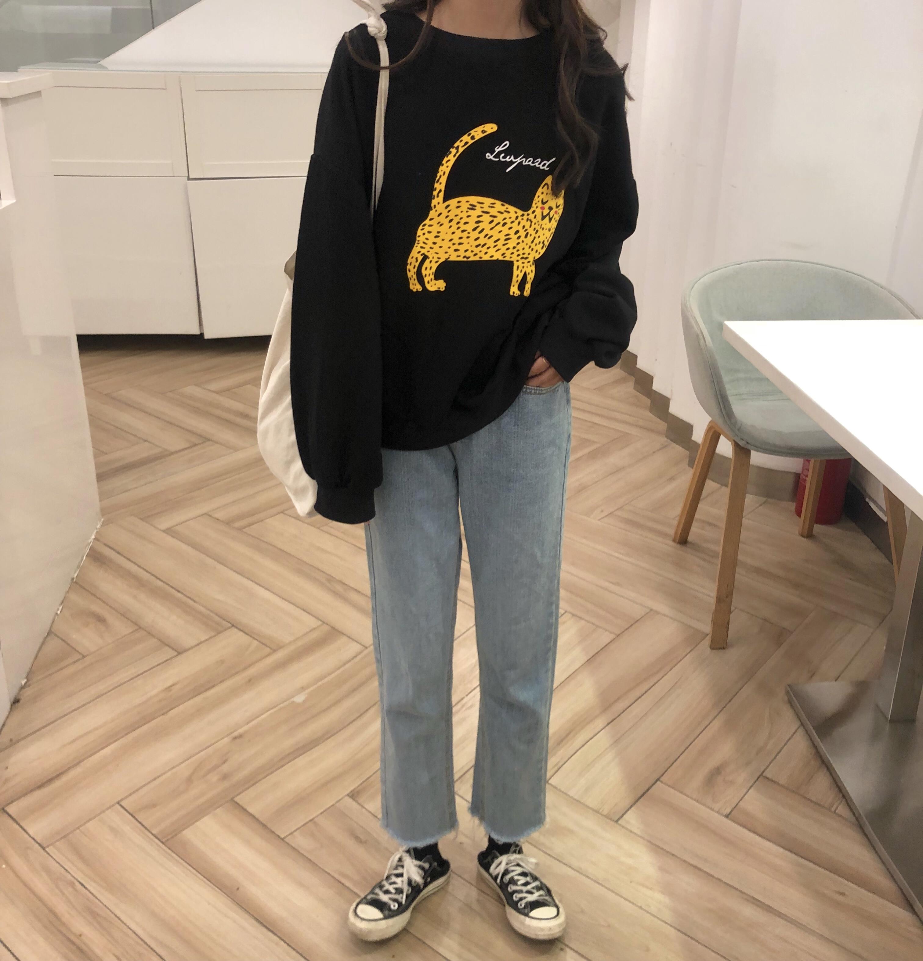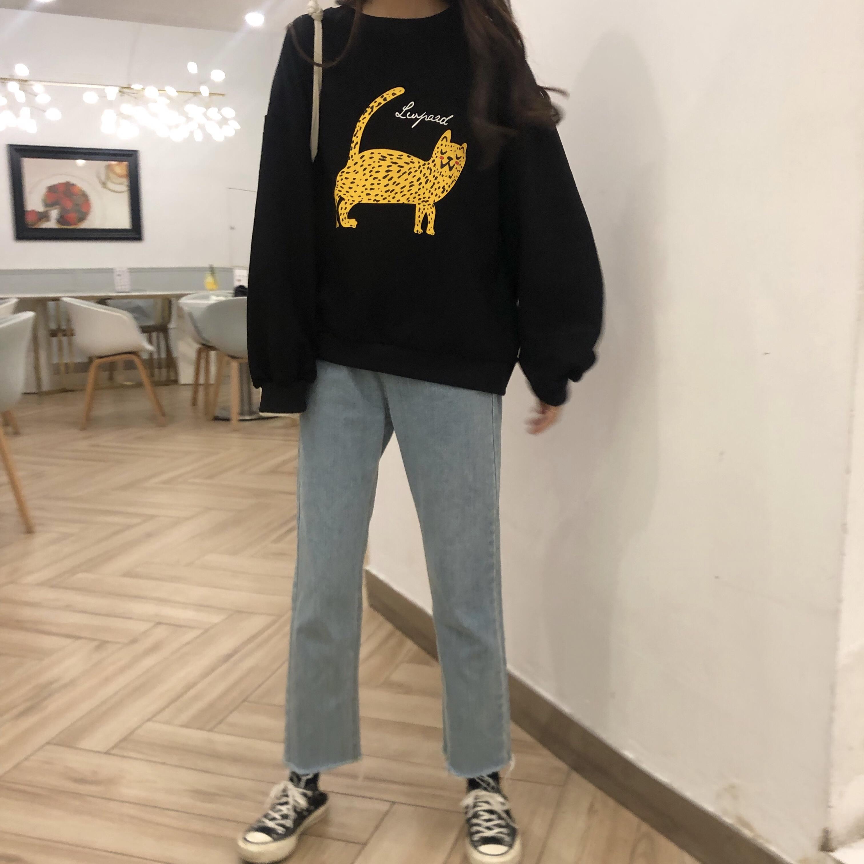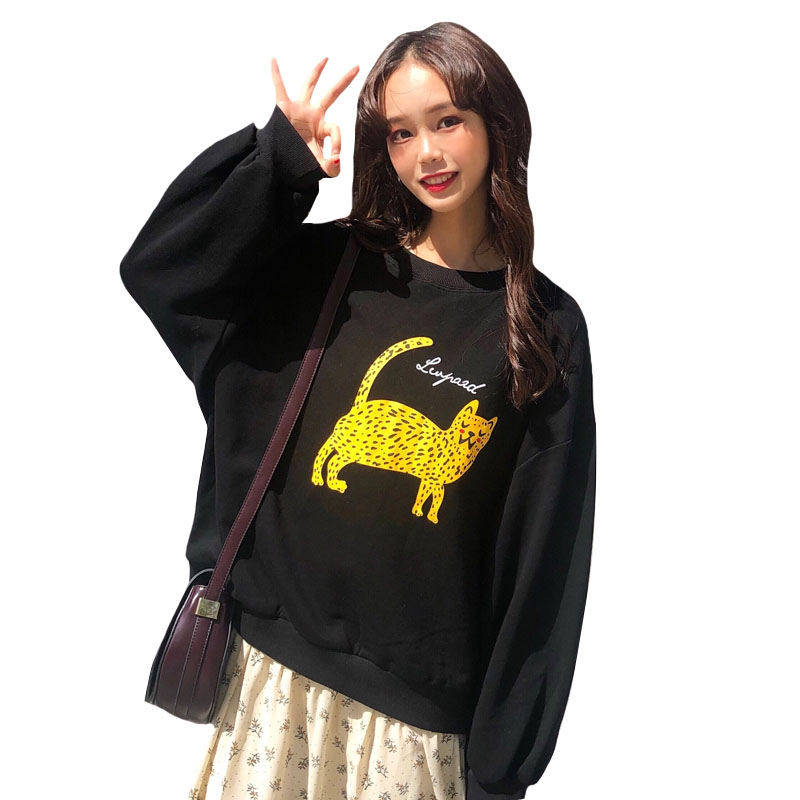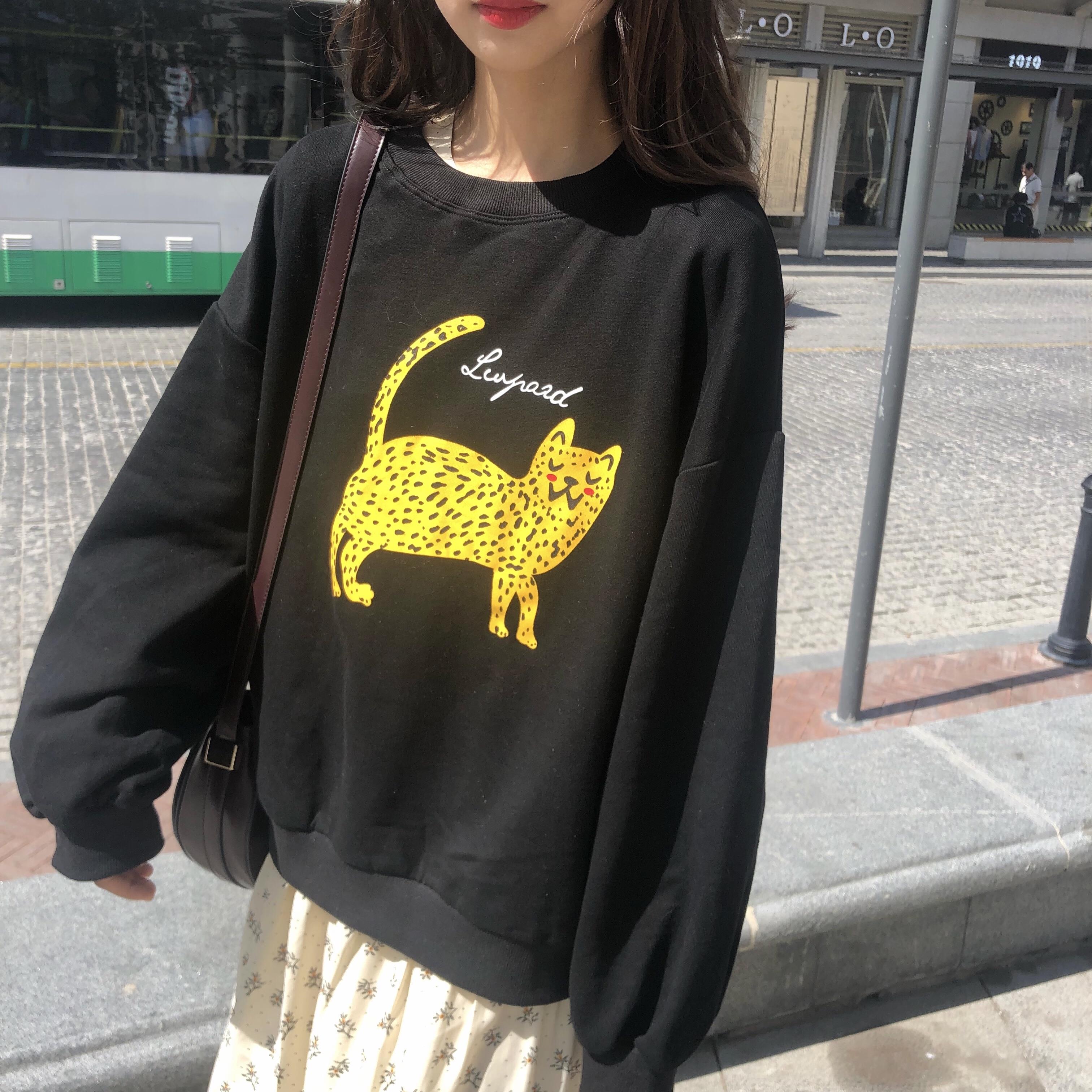 / 秋季韓版原宿風BF風寬松卡通豹子套頭pp home超火衛衣上衣外套女