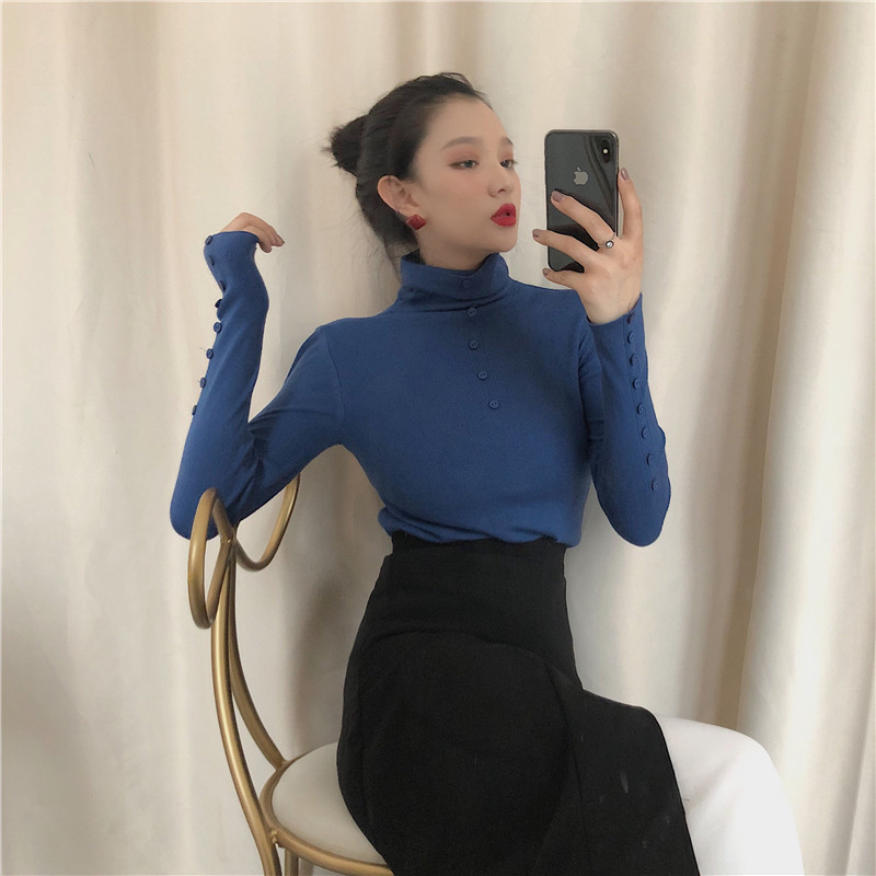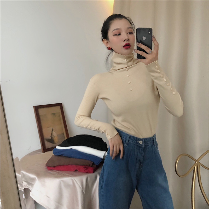時尚chic早秋毛衣慵懶風韓版打底針織衫氣質高領修身包芯紗上衣潮