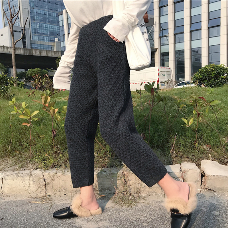 秋裝女2018新款復古高腰寬松針織休閑褲時尚黑色哈倫褲八分褲子潮