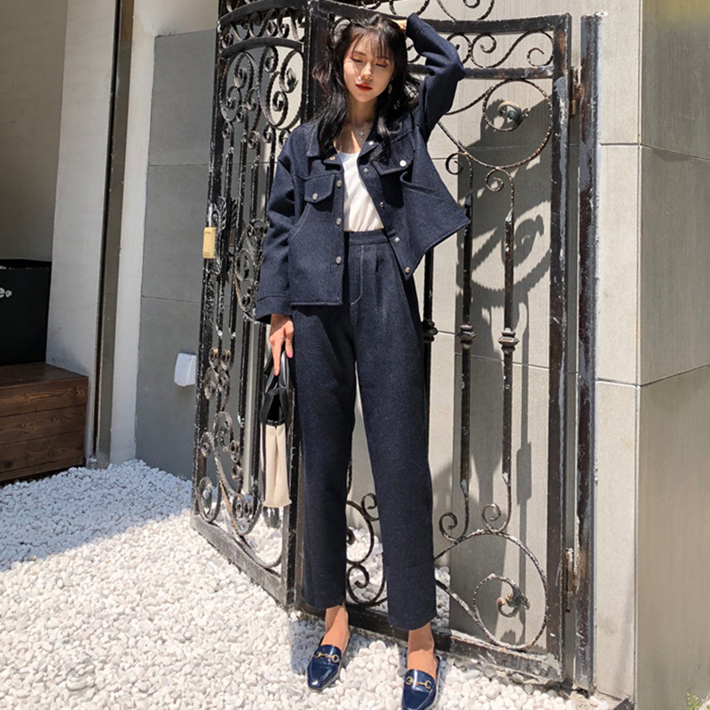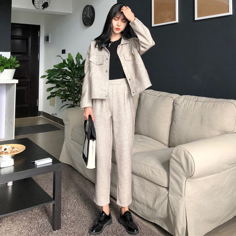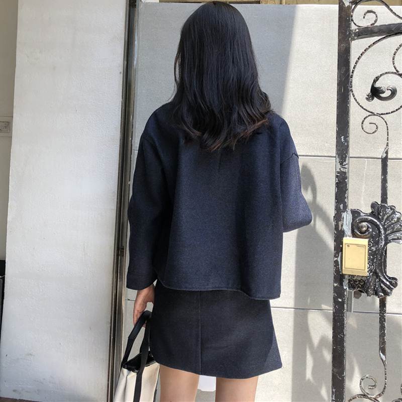 / 御姐套裝女秋冬新款寬松長袖短外套高腰顯瘦短裙子純色休閑直筒褲
