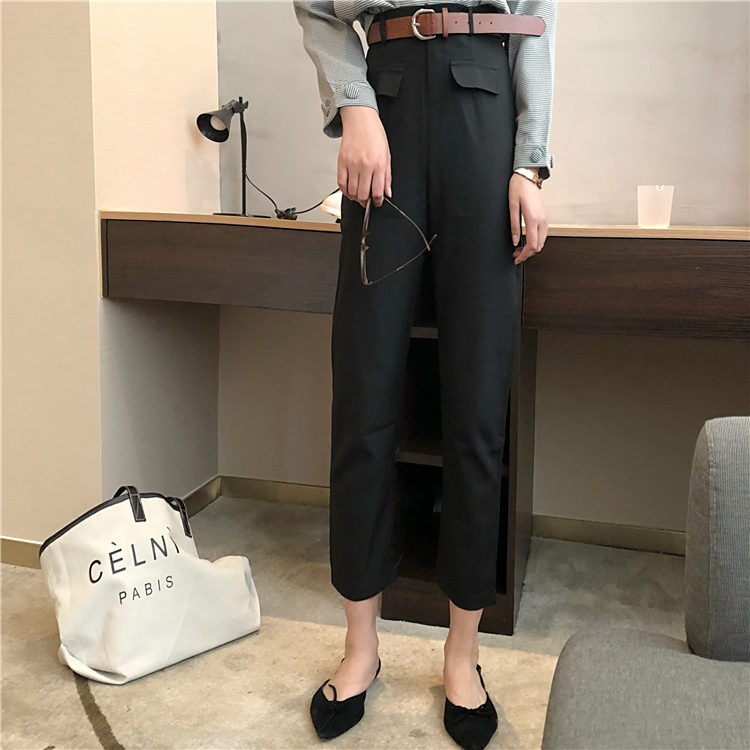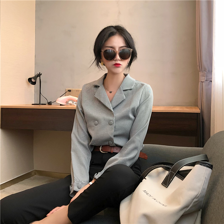/ 套裝女2018新款復古翻領格子小西裝外套+休閑褲(配皮帶)分開拍