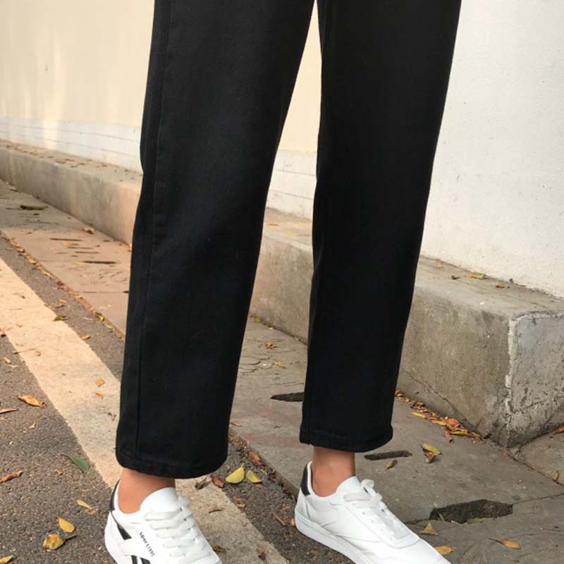 / 高腰顯瘦復古風黑色牛仔褲女秋裝新款寬松直筒褲學生休閑九分褲子