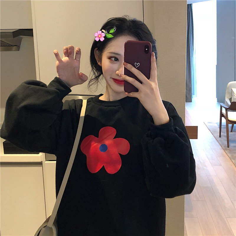 秋裝女2018新款套裝復古印花加絨衛衣女+百褶波點半身長裙兩件套