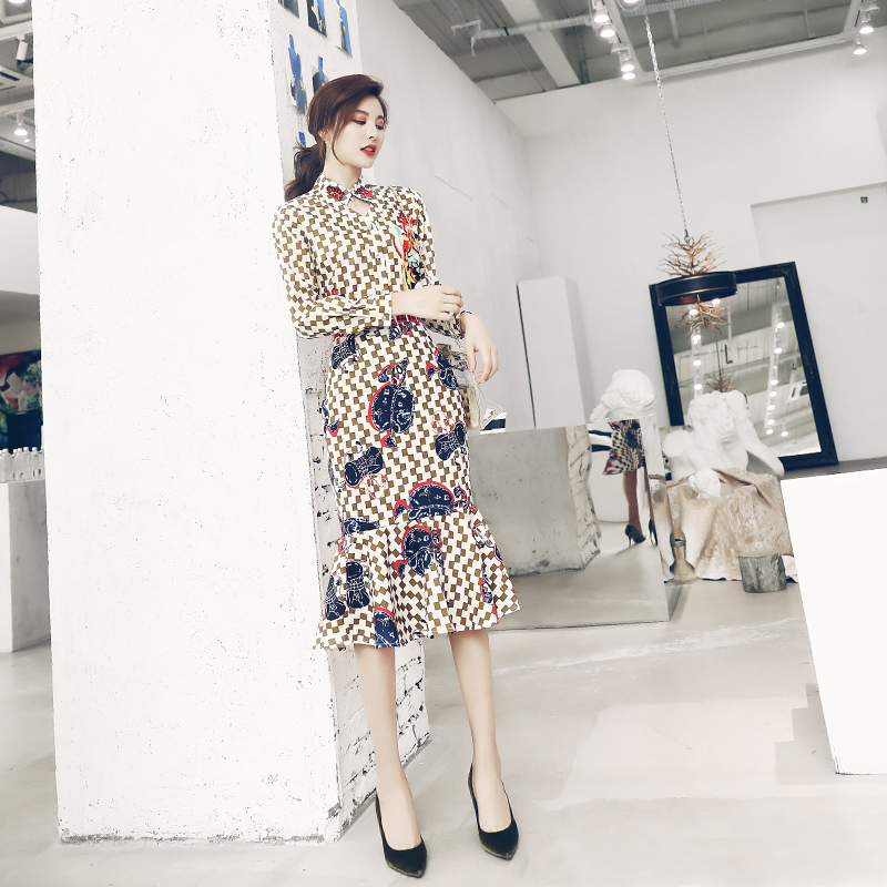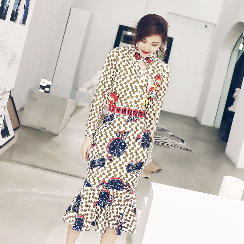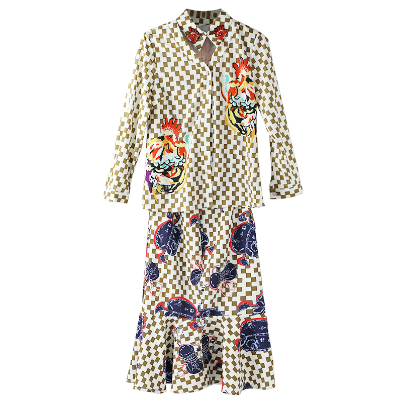 / S秀印花套裝女夏2018新款時尚休閑氣質上衣半身人魚裙兩件套潮