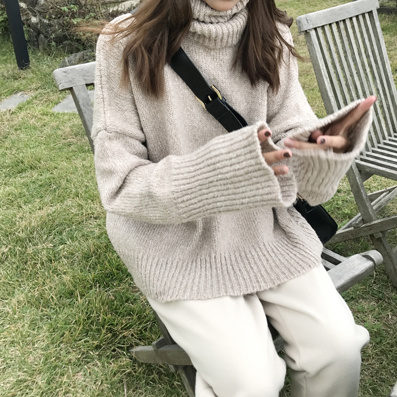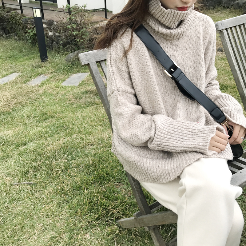 韓系早秋時尚網紅毛衣女2018新款寬松慵懶風加厚高領顯瘦遮臀毛衣