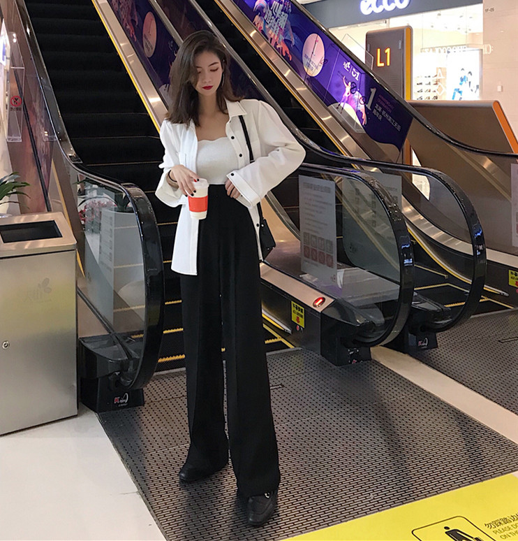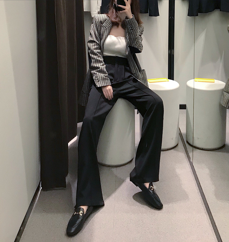 高腰西裝直筒褲秋季新款韓版百搭復古chic純色顯瘦中縫垂感闊腿褲