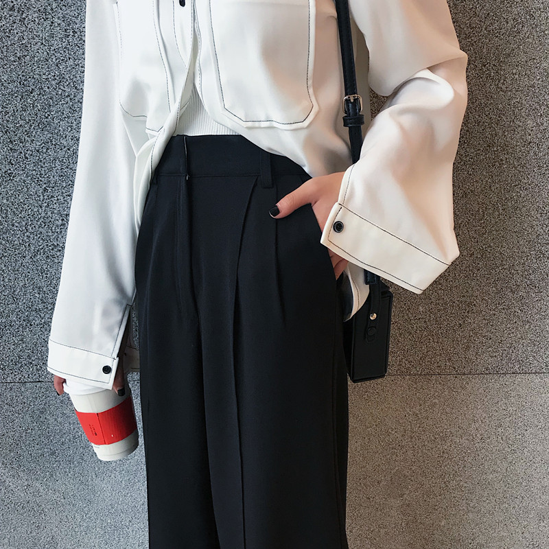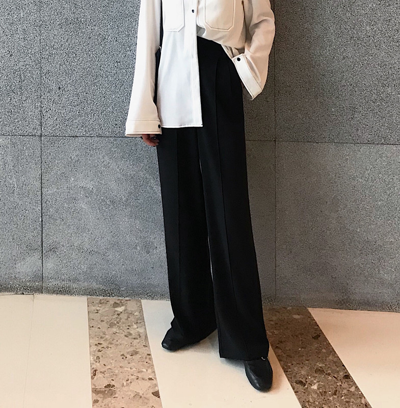 / 高腰西裝直筒褲秋季新款韓版百搭復古chic純色顯瘦中縫垂感闊腿褲