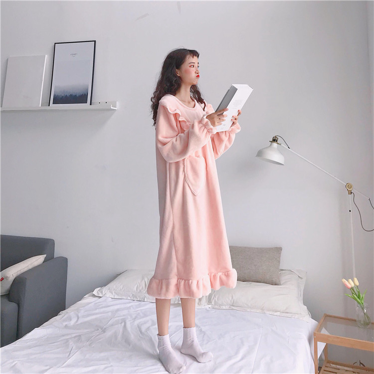 / 秋冬韓版甜美公主睡裙可愛法蘭絨寬松加厚性感長袖睡衣長款裙子女